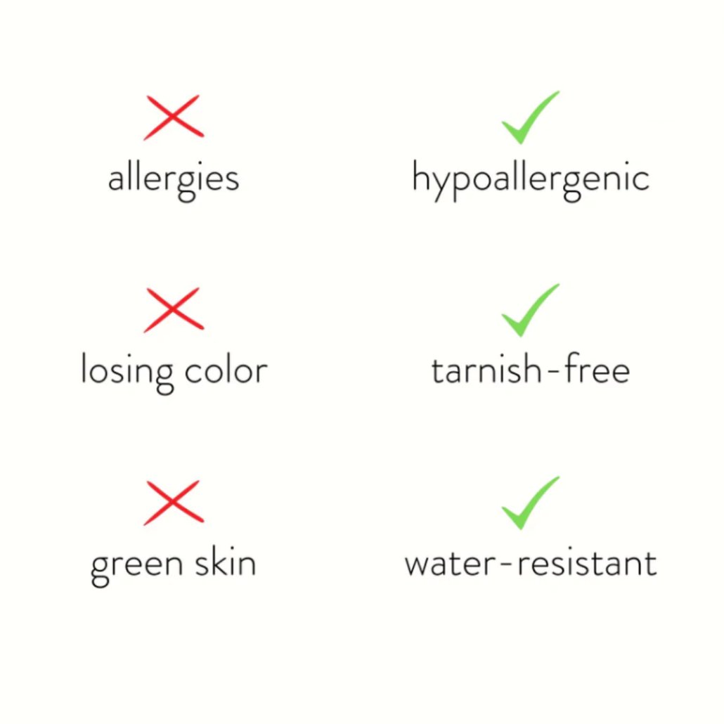 Hergestellt aus wasserdichtem Edelstahl, müssen Sie sich nie wieder Sorgen um das Verblassen oder Verfärben von Schmuck machen.
