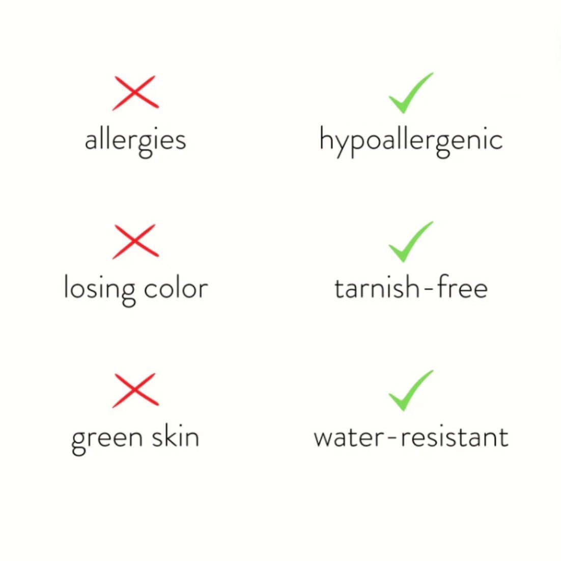 Hergestellt aus wasserfestem Edelstahl, müssen Sie sich nie wieder um das Verblassen oder Oxidieren von Schmuck sorgen.
